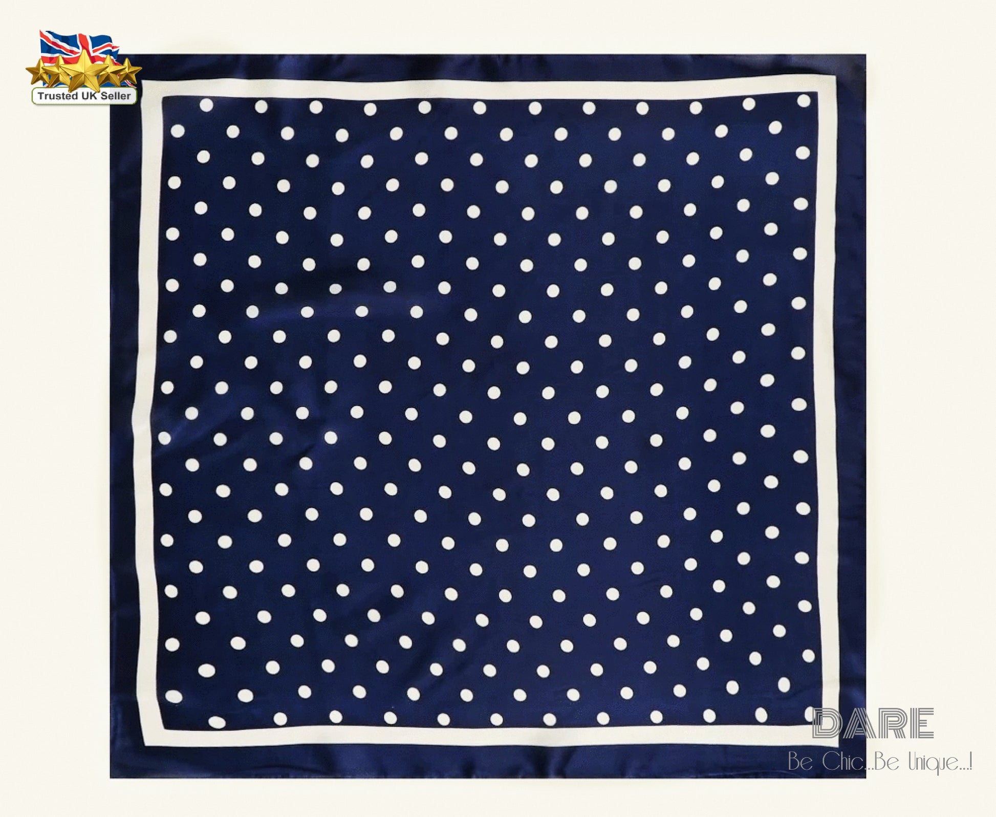 🔵 Navy Polka Dot Satin Scarf – Classic, Chic & Timeless