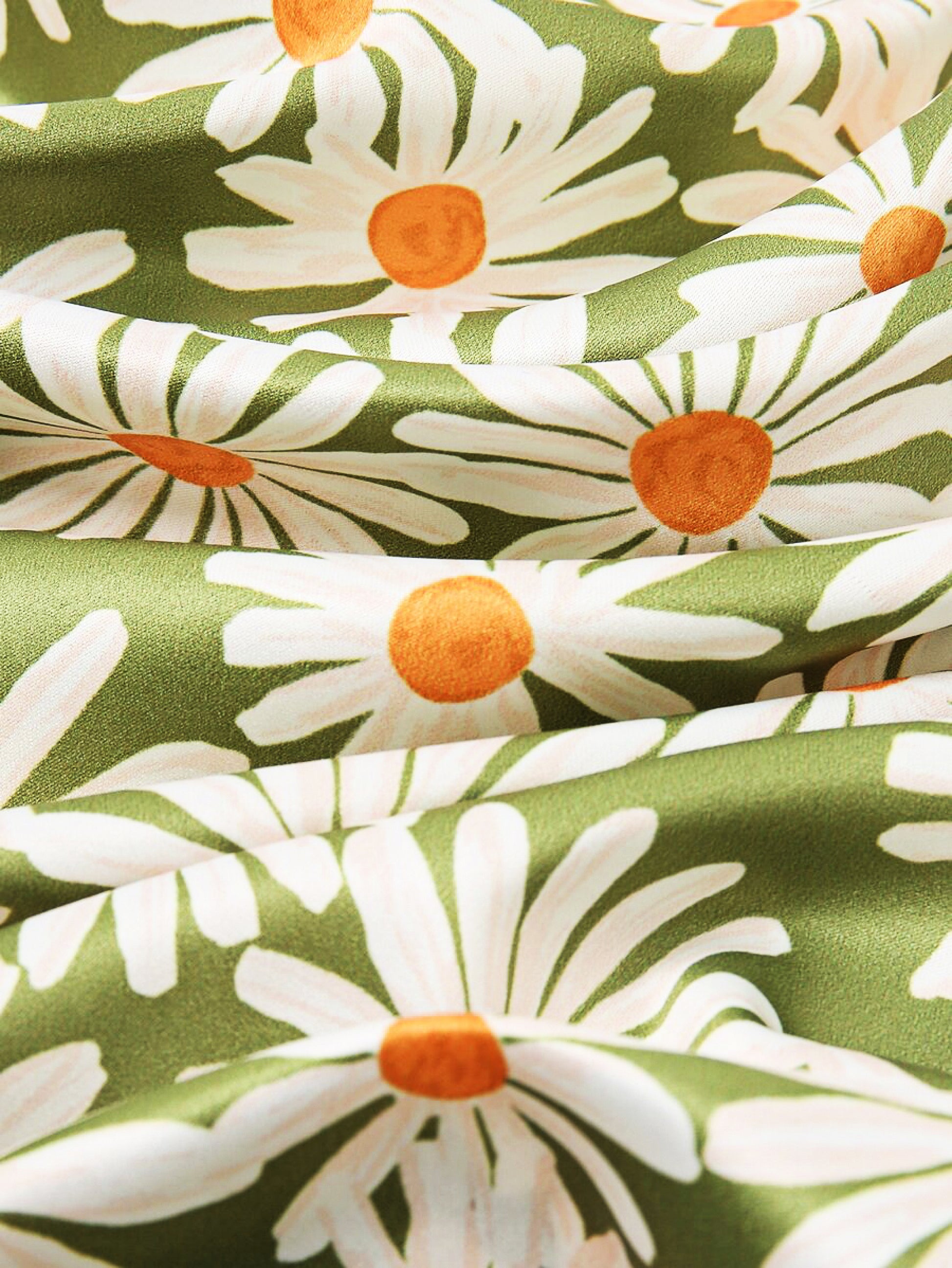 - Olive green base with white daisy floral print